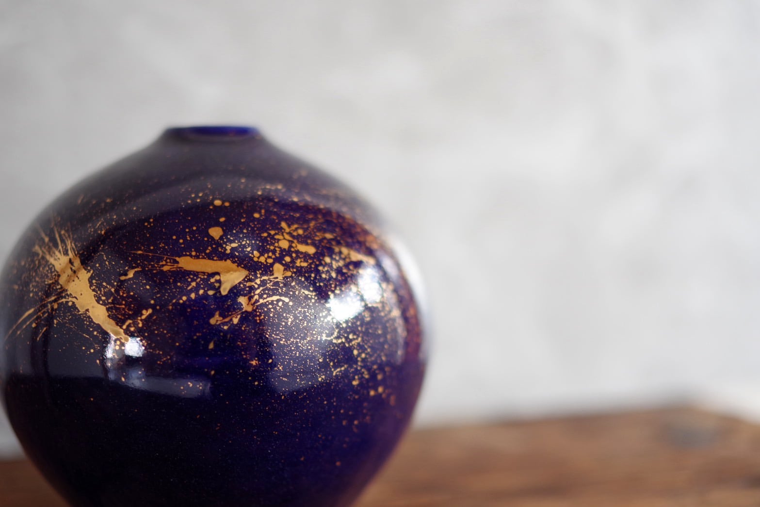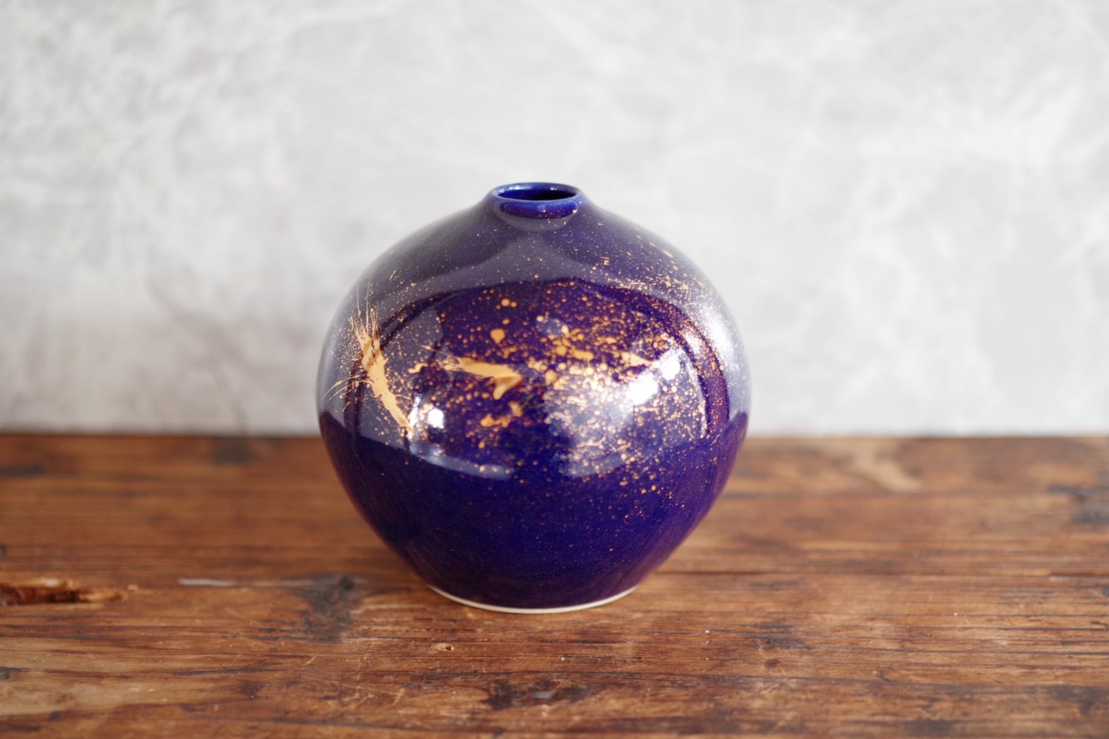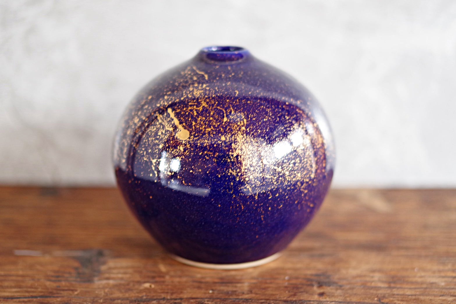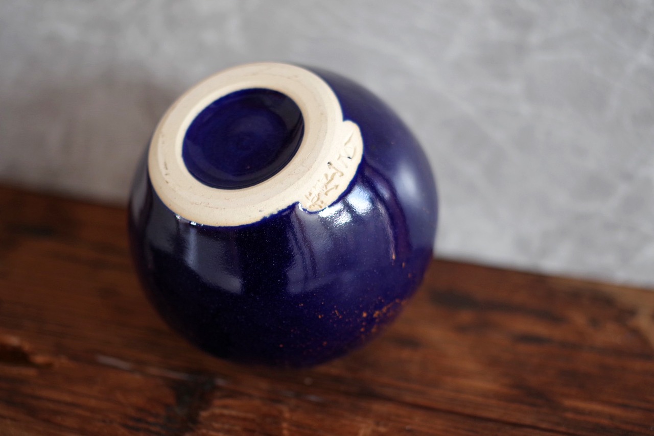 深い藍色に金色の粒が散りばめられた丸壺。