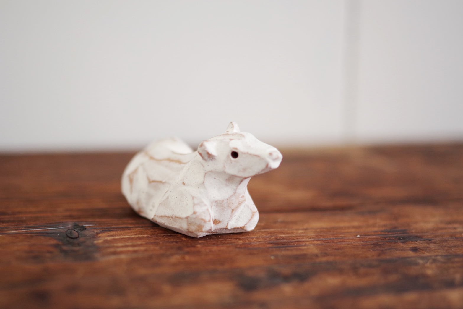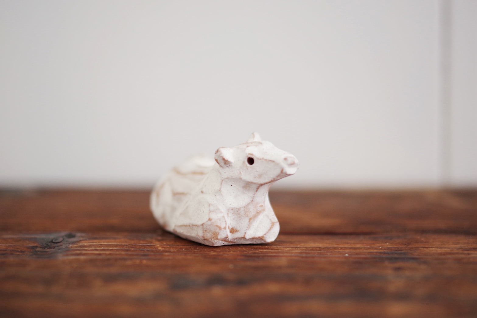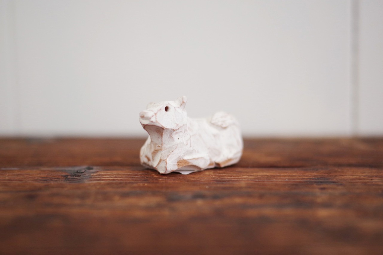 赤膚焼でつくられた、小さな牛の置物です。