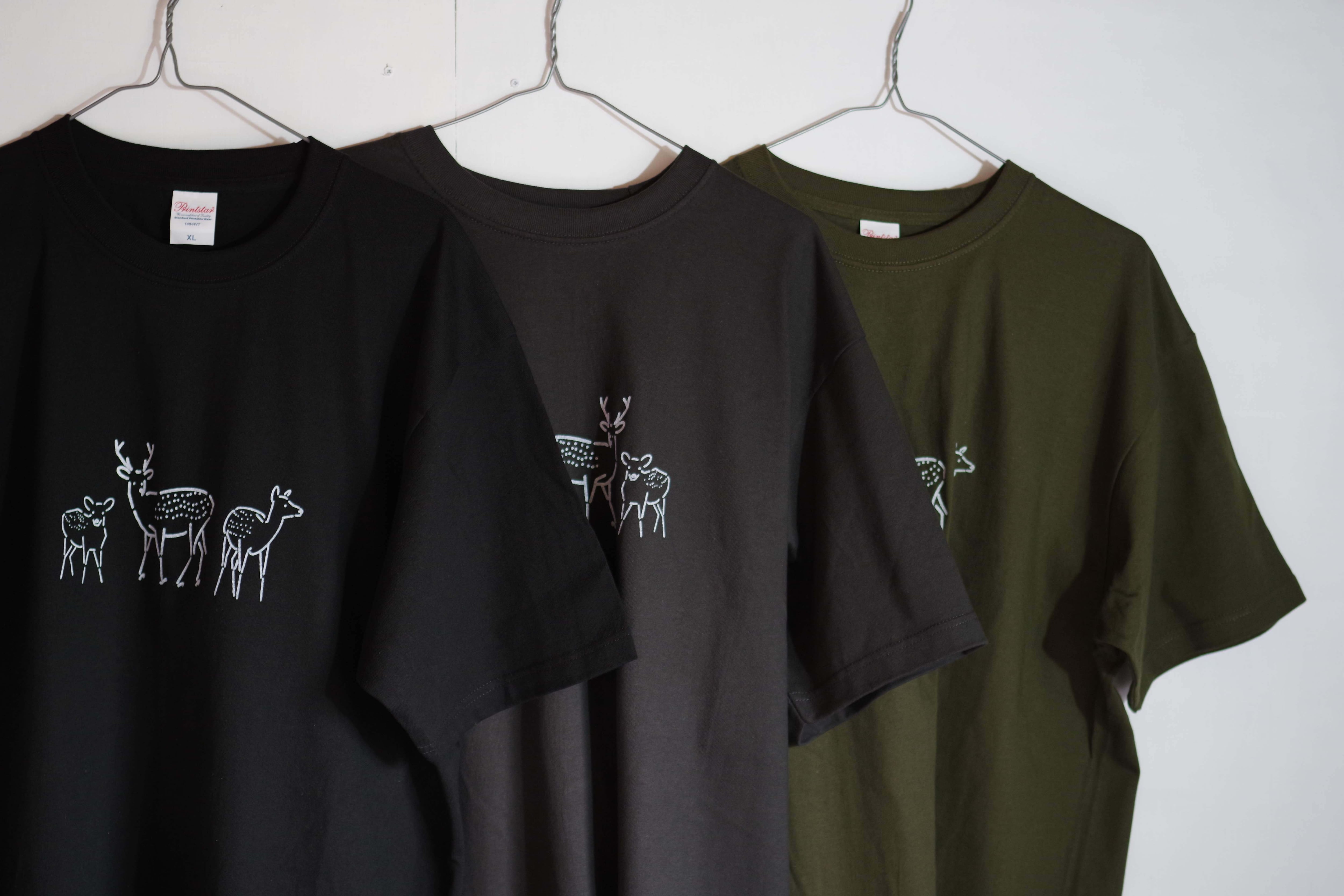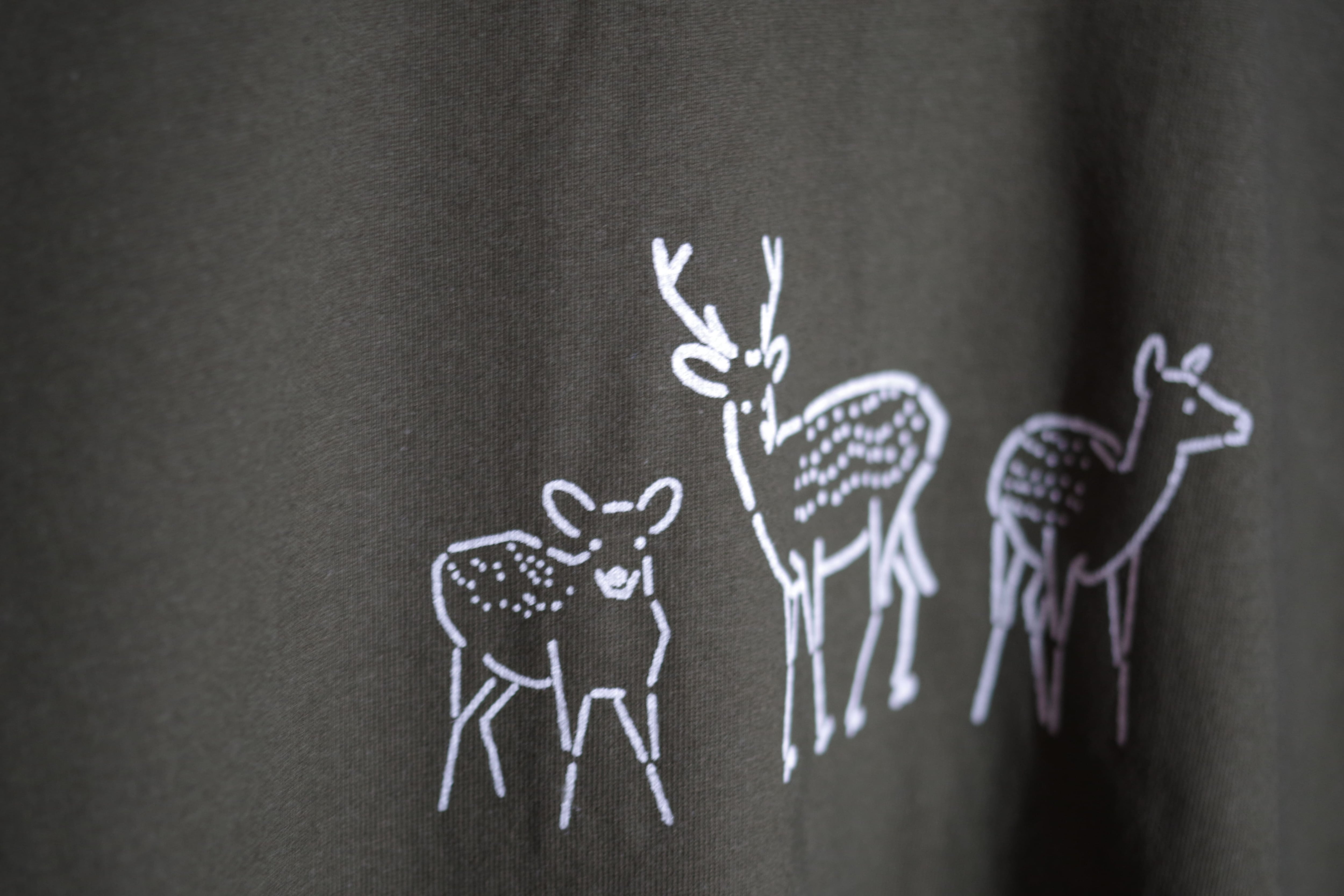 シカをプリントしたゆったりとしたオーバーサイズのTシャツです。